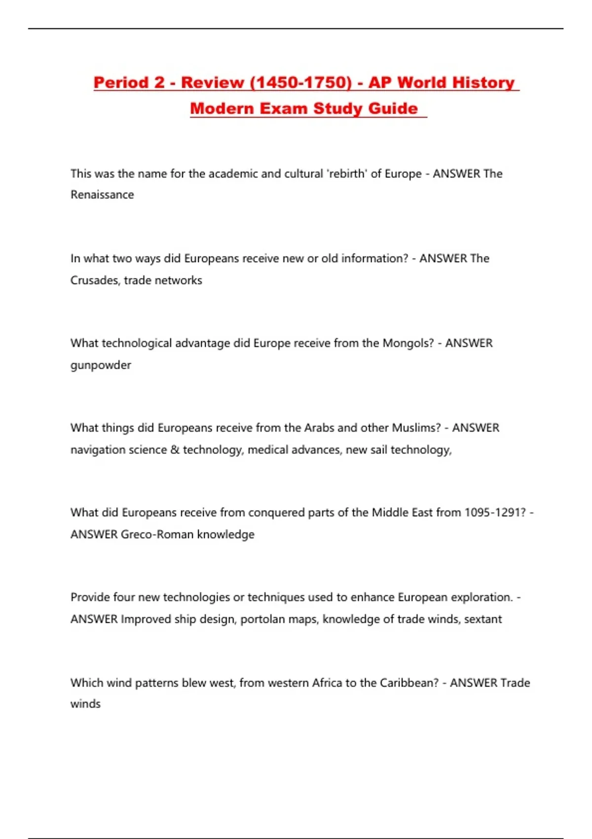Period 2 - Review (1450-1750) - AP World History