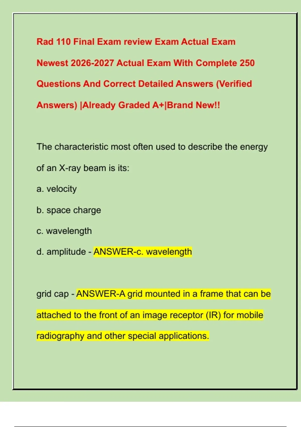 Rad 110 Final Exam review Exam Actual Exam Newest Actual Exam With Complete 250 Questions And Correct Detailed Answers (Verified Answers) |Already Graded A+|Brand New!!