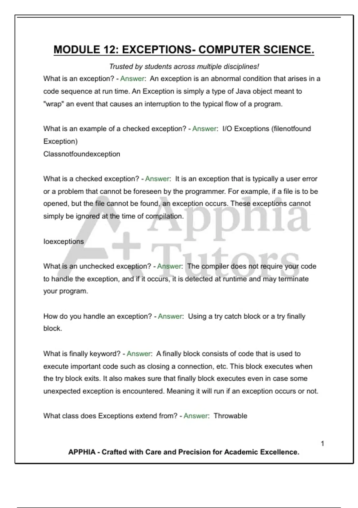 MODULE 12: EXCEPTIONS- COMPUTER SCIENCE. Trusted by students across multiple disciplines!