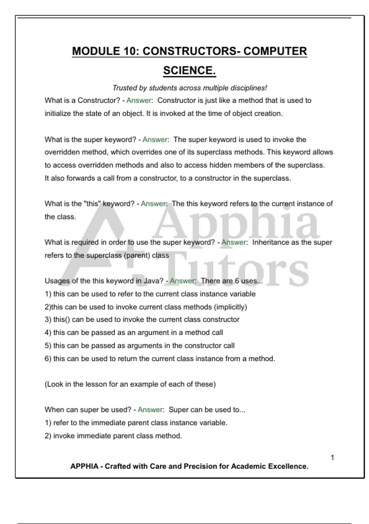 MODULE 10: CONSTRUCTORS- COMPUTER SCIENCE. Trusted by students across multiple disciplines!