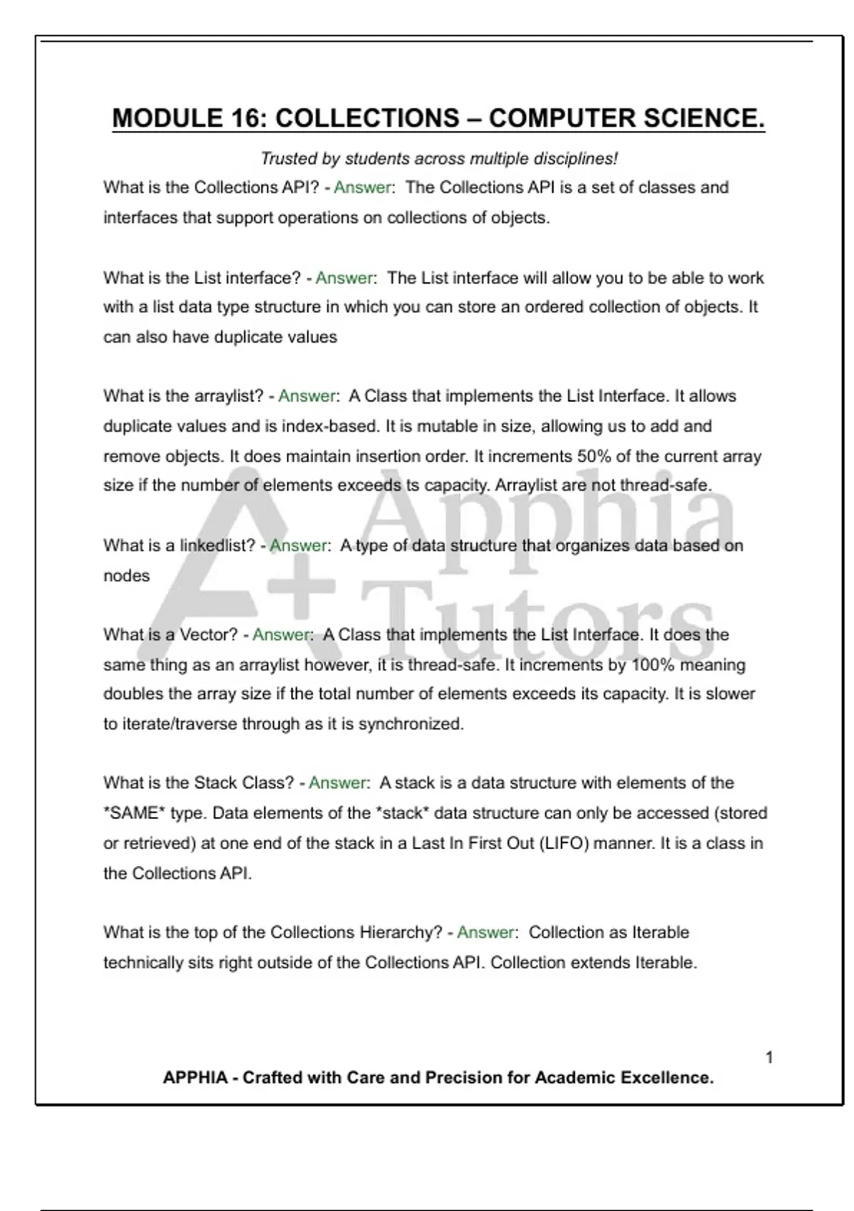 MODULE 16: COLLECTIONS – COMPUTER SCIENCE. Trusted by students across multiple disciplines!