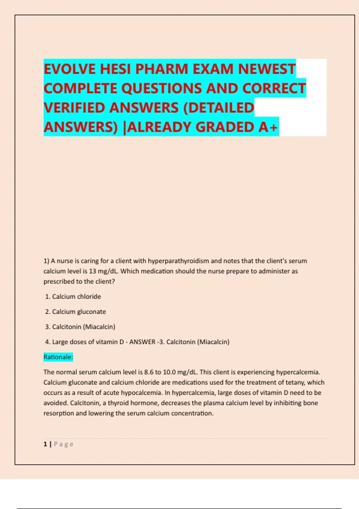 4. Large doses of vitamin D - ANSWER -3. Calcitonin (Miacalcin)