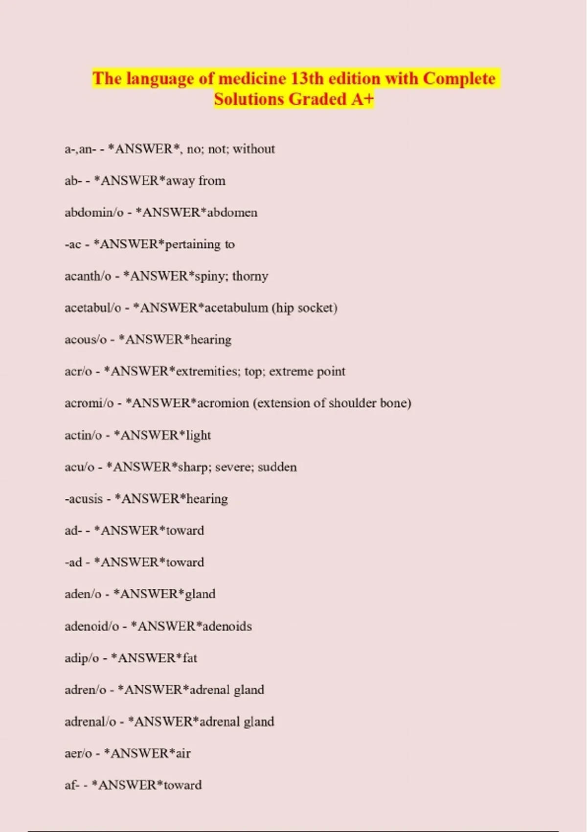 The language of medicine 13th edition with Complete Solutions Graded A+