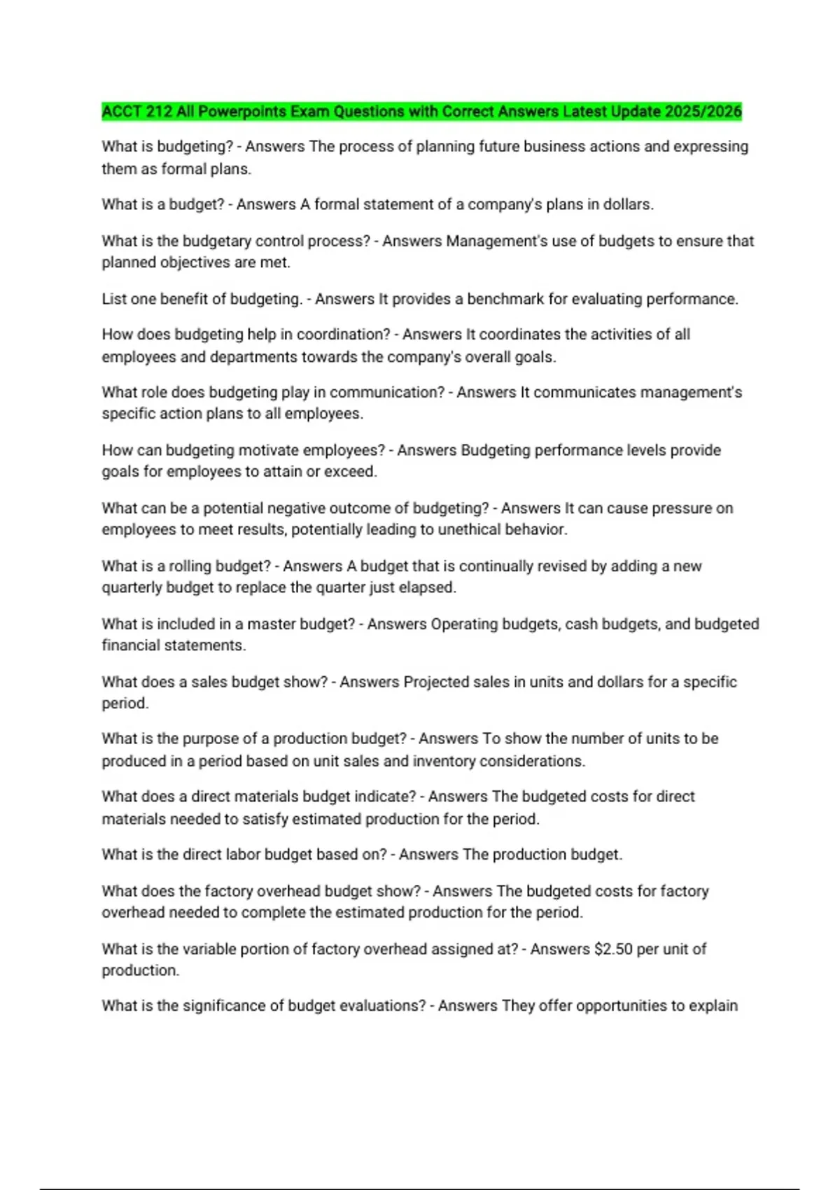 ACCT 212 All Powerpoints Exam Questions with Correct Answers Latest Update 2025/2026