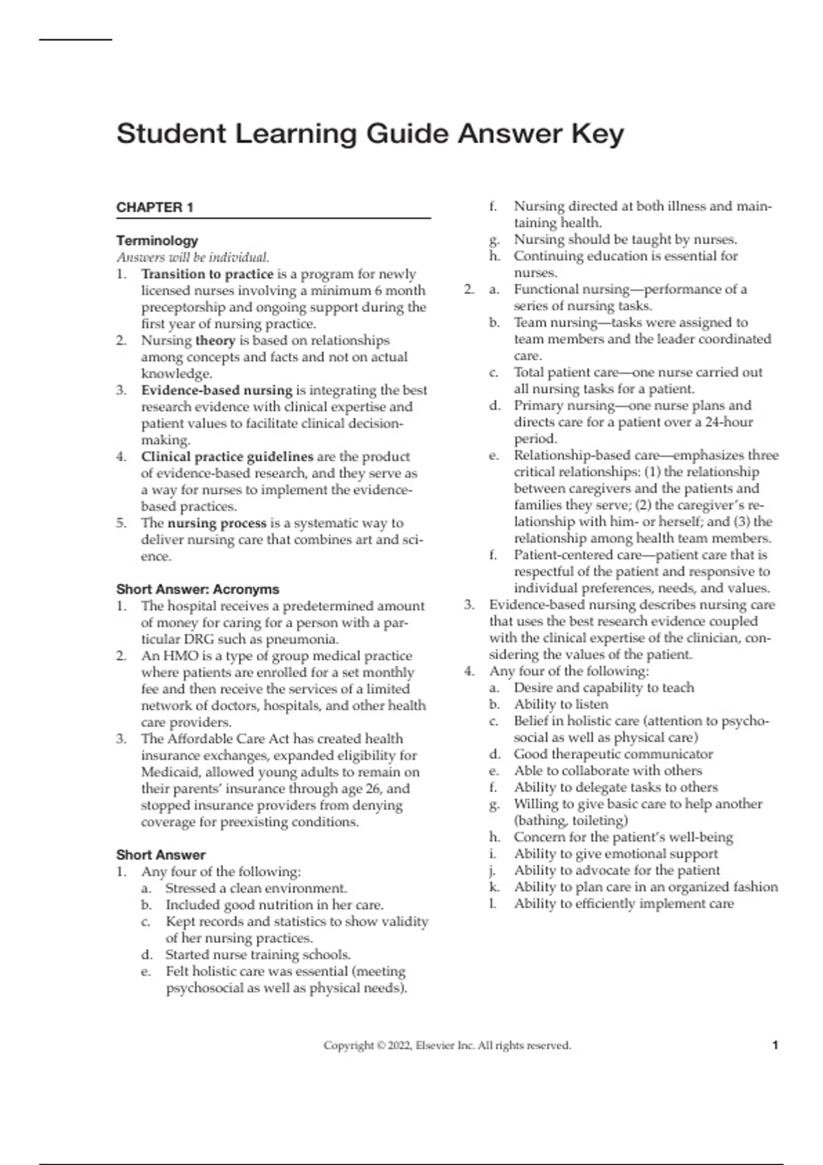 CHAPTER 1 f. Nursing directed at both illness and main-