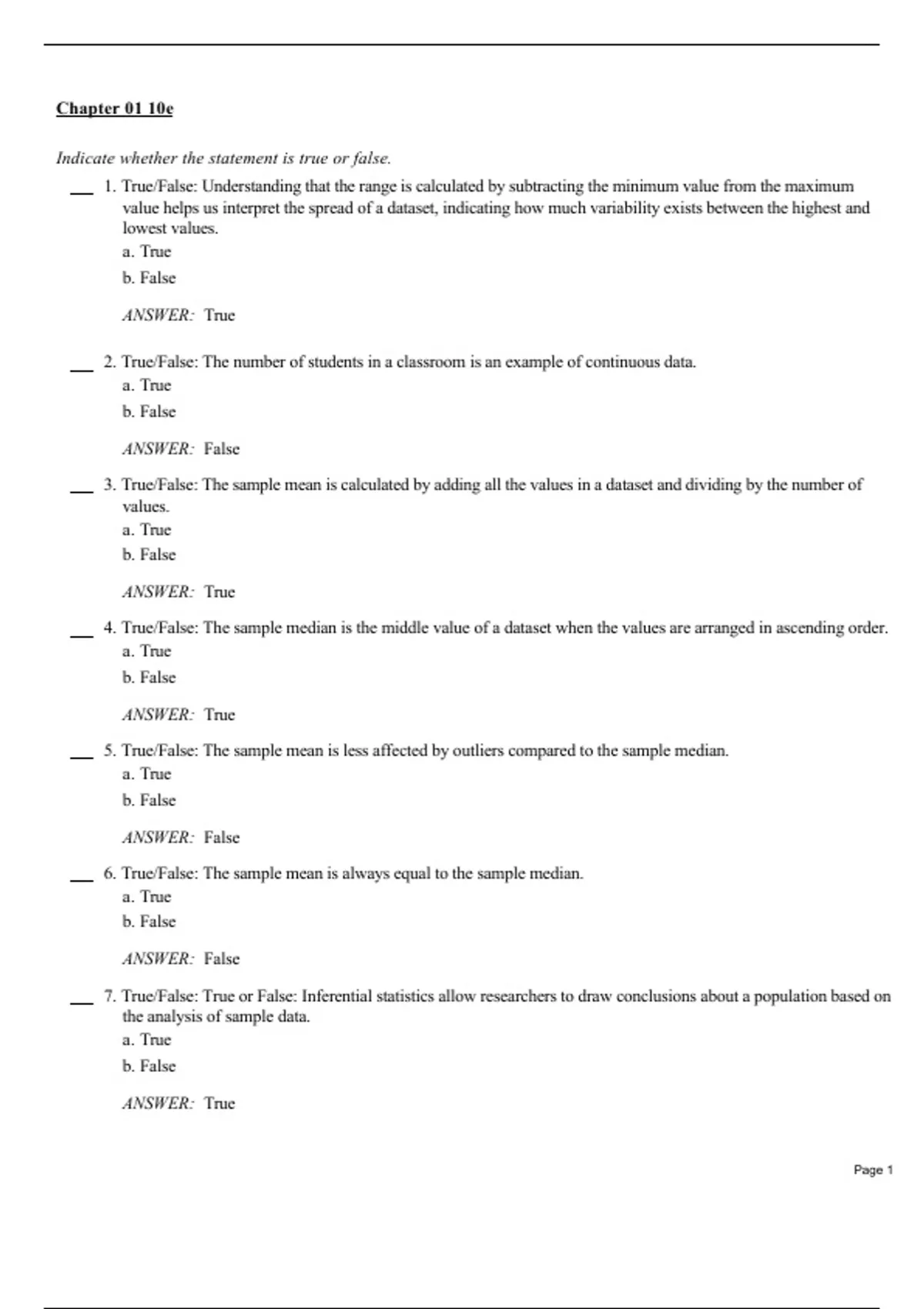 1. True/False: Understanding that the range is calculated by subtracting the minimum value from the maximum