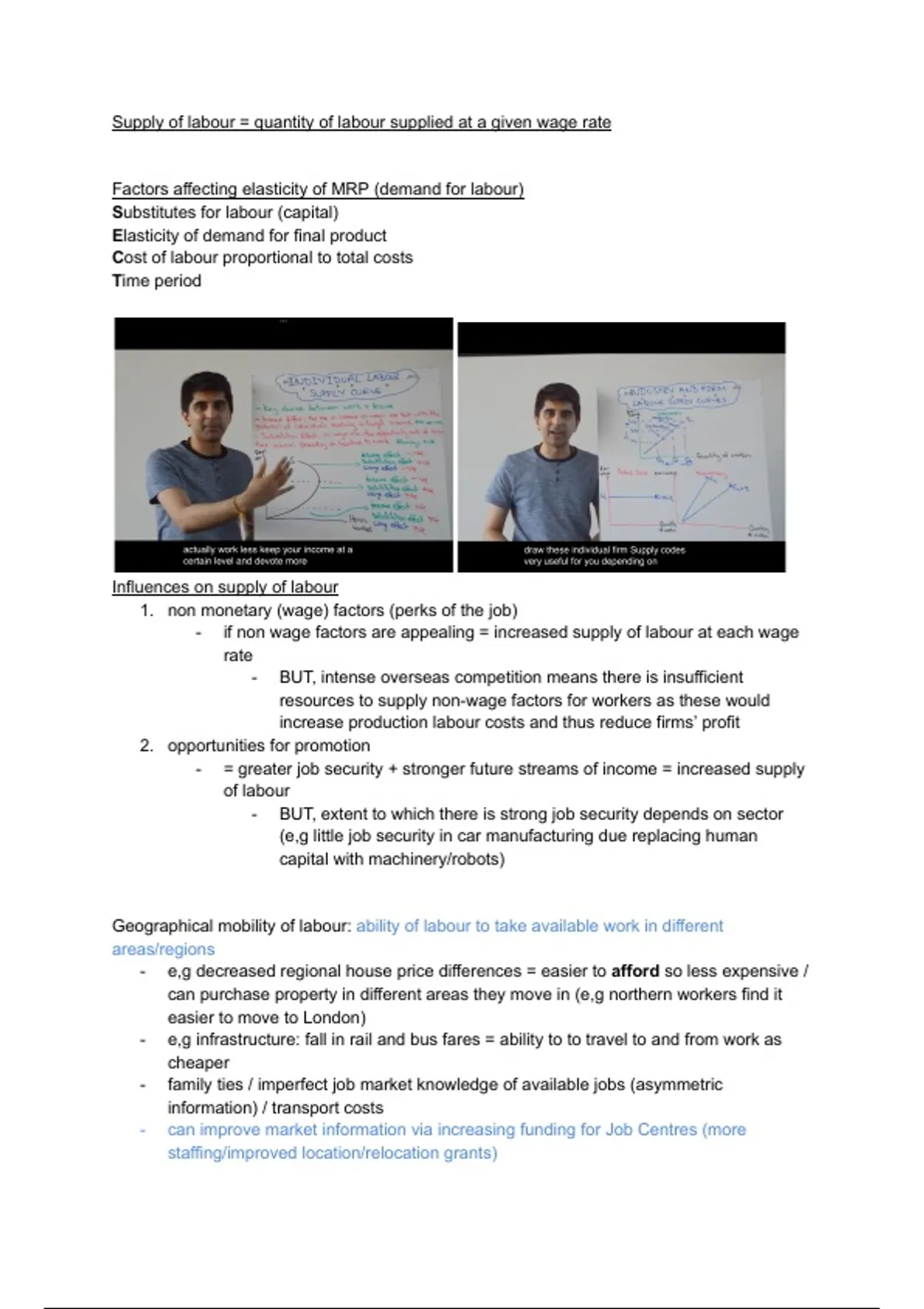 Influences on supply of labour