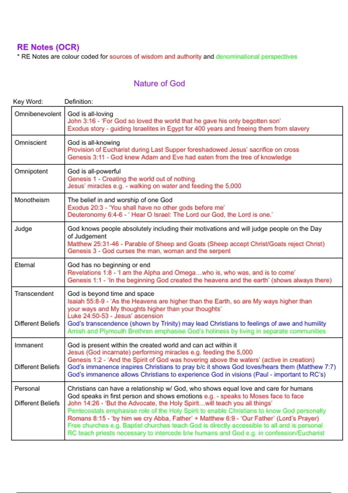 Detailed colour-coded summary notes Perfect for active recall & last minute revision Received a top level grade 9 (A**) revising these summary notes I created Please check out my other summary notes & specifically OCR ALevel R/S notes for more incredible revision notes to get your top grade ! :p Any questions, please don’t hesitate to ask :)