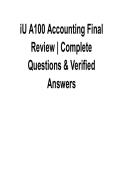 Prepare effectively for the iU A100 Accounting Final Exam with this Complete Questions and Verified Answers Study Guide, updated for 2026. This comprehensive resource includes accurate practice questions, detailed explanations, and key accounting concepts covering financial statements, journal entries, balance sheets, and accounting principles. Designed to help students strengthen understanding, boost confidence, and excel in the iU A100 final exam using the latest 2026 updated materials.