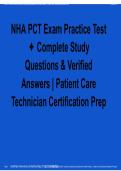 NHA PCT Exam Practice Test Complete Study Questions and Verified Answers 2025/ 2026 is a comprehensive preparation resource designed to help aspiring Patient Care Technicians master essential concepts and clinical skills. This guide includes realistic practice questions, detailed explanations, and verified answers with solution to enhance knowledge retention and test readiness. Ideal for students preparing for the NHA PCT certification exam, this study material strengthens practical understandin...