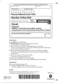 - 2025 Pearson Edexcel Level 3 GCE 9GK0/01 Greek Advanced PAPER 1: Translation into English, reading comprehension and writing (research question) in Greek • Exam (elaborations)