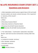 NJ Life Insurance Exam Study Set 1 Latest 2026 | Questions with 100% Correct Answers Complete | Updated 2026 / 2027 Verified by Experts NJ Life Insurance Exam Complete Prep Guide (2026 / 2027) is a comprehensive, exam-focused resource designed for students preparing for the New Jersey Life Insurance Producer Exam, NJ Life Insurance Final Exam, and NJ Life Insurance and Laws Producer Exam. Built specifically for licensing candidates, this guide includes actual 2026 exam-style questions with verif...
