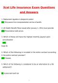 XCEL Life Insurance Exam Newest 2026 Updated | Questions with 100% Correct Answers Complete | Updated 2026 / 2027 Verified by Experts XCEL Exam Complete Prep Pack (2026 / 2027) is a comprehensive, exam-accurate study resource designed for students preparing for the XCEL Final Exam, XCEL Life Insurance Exam, XCEL Life Policies Exam, and Florida 2-15 Life & Health State Exam Simulator. Built specifically for licensing candidates using the XCEL Solutions platform, this guide includes actual 2026 ex...