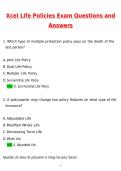 XCEL Life Policies Exam Newest 2026 Updated | Questions with 100% Correct Answers Complete | Updated 2026 / 2027 Verified by Experts XCEL Exam Complete Prep Pack (2026 / 2027) is a comprehensive, exam-accurate study resource designed for students preparing for the XCEL Final Exam, XCEL Life Insurance Exam, XCEL Life Policies Exam, and Florida 2-15 Life & Health State Exam Simulator. Built specifically for licensing candidates using the XCEL Solutions platform, this guide includes actual 2026 exa...