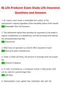 NJ Life Producer Exam Study Life Insurance Latest 2026 | Questions with 100% Correct Answers Complete | Updated 2026 / 2027 Verified by Experts NJ Life Insurance Exam Complete Prep Guide (2026 / 2027) is a comprehensive, exam-focused resource designed for students preparing for the New Jersey Life Insurance Producer Exam, NJ Life Insurance Final Exam, and NJ Life Insurance and Laws Producer Exam. Built specifically for licensing candidates, this guide includes actual 2026 exam-style questions wi...
