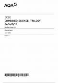AQA GCSE COMBINED SCIENCE TRILOGY :BIOLOGY PAPER 1 MARK SCHEME(8464/B/1H :HIGHER TIER)2024