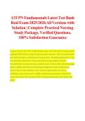 Prepare for ATI PN Fundamentals with this latest 2025/2026 test bank with solution, featuring practice questions and answers designed to reinforce nursing concepts, improve clinical skills, and boost exam performance.