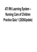 ATI RN Learning System – Nursing Care of Children Practice Quiz 1 | Verified Questions & Answers 2026