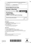 - 2025 Pearson Edexcel Level 3 GCE 9PS0/01 Psychology Advanced PAPER 1: Foundations in Psychology QUESTION PAPER & MARKSCHEME (MERGED) • Exam (elaborations)