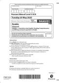 - 2025 Pearson Edexcel Level 3 GCE 9AA0/01 Arabic Advanced PAPER 1: Translation into English, Reading Comprehension and Writing (research question) in Arabic QUESTION PAPER & MARKSCHEME (MERGED) • Exam (elaborations)