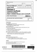 This document is the official specimen question paper for Paper 1 of the Edexcel AS-Level Biology A course. It covers key topics such as cell membranes, cardiovascular system, transport mechanisms, gene function, and experimental design. The content includes multiple-choice questions, data analysis, and short to extended response items based on real-life biology contexts. Ideal for practice ahead of AS exams.