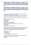 Health Online- Nutrition & Physical. Activity- Unit Test Complete Answered Spring 2023-2024.Graded A+.