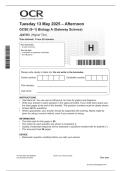 OCR GCSE BIOLOGY B MAY JUNE 2025 PAPERS HIGHER TIER MODEL ANSWERS WORKED SOLUTIONS VERIFIED BUNDLE DOWNLOAD