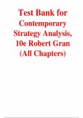 This test bank provides a comprehensive assessment suite for the 10th edition of Contemporary Strategy Analysis by Robert M. Grant. Chapter 1: The Concept of Strategy; Chapter 2: Goals, Values, and Performance; Chapter 3: Industry Analysis: The Fundamentals; Chapter 4: Further Topics in Industry and Competitive Analysis; Chapter 5: Analyzing Resources and Capabilities; Chapter 6: Organization Structure and Management Systems: The Fundamentals of Strategy Implementation; Chapter 7: The Sources an...