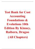 This test bank provides a comprehensive assessment suite for the 10th edition of Cost Accounting: Foundations & Evolutions by Kinney, Raiborn, and Dragoo. Chapter 1: Introduction to Cost Accounting; Chapter 2: Cost Terminology and Cost Behaviors; Chapter 3: Predetermined Overhead Rates, Flexible Budgets, and Absorption/Variable Costing; Chapter 4: Activity-Based Management and Activity-Based Costing; Chapter 5: Job Order Costing; Chapter 6: Process Costing; Chapter 7: Standard Costing and Varian...