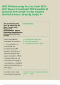 - HESI PN GERONTOLOGY ACTUAL EXAM QUESTIONS WITH DETAILED ANSWERS WITH RATIONALES AND A READINESS PRACTICE EXAM TEST BANK WITH A STUDY GUIDE | LATEST UPDATED AND VERIFIED FOR GUARANTEED PASS • Exam (elaborations)