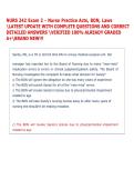 - NURS 242 Exam 2 - Nurse Practice Acts, BON, Laws LATEST UPDATE WITH COMPLETE QUESTIONS AND CORRECT DETAILED ANSWERS VERIFIED 100% ALREADY GRADED A+BRAND NEW!!! • Exam (elaborations)
