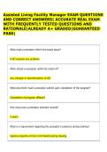 - Assisted Living Facility Manager EXAM QUESTIONS AND CORRECT ANSWERS| ACCURATE REAL EXAM WITH FREQUENTLY TESTED QUESTIONS AND RATIONALE|ALREADY A GRADED|GUARANTEED PASS|LATEST UPDATE 2026 2027 • Exam (elaborations)
