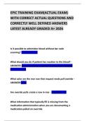 EPIC TRAINING EXAM(ACTUAL EXAM) WITH CORRECT ACTUAL QUESTIONS AND CORRECTLY WELL DEFINED ANSWERS LATEST ALREADY GRADED A+ 2026