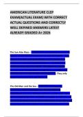 AMERICAN LITERATURE CLEP EXAM(ACTUAL EXAM) WITH CORRECT ACTUAL QUESTIONS AND CORRECTLY WELL DEFINED ANSWERS LATEST ALREADY GRADED A+ 2026