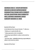 GEORGIA DDA 6 - HOUR DEFENSIVE DRIVER & DRIVER IMPROVEMENT EXAM(ACTUAL EXAM) WITH CORRECT ACTUAL QUESTIONS AND CORRECTLY WELL DEFINED ANSWERS LATEST ALREADY GRADED A+ 2026