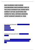 NACE NURSING CARE DURING CHILDBEARING AND NURSING CARE OF THE CHILD EXAM(ACTUAL EXAM) WITH CORRECT ACTUAL QUESTIONS AND CORRECTLY WELL DEFINED ANSWERS LATEST ALREADY GRADED A+ 2026