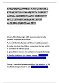 CHILD DEVELOPMENT AND GUIDANCE EXAM(ACTUAL EXAM) WITH CORRECT ACTUAL QUESTIONS AND CORRECTLY WELL DEFINED ANSWERS LATEST ALREADY GRADED A+ 2026