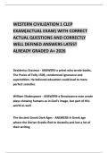 WESTERN CIVILIZATION 1 CLEP EXAM(ACTUAL EXAM) WITH CORRECT ACTUAL QUESTIONS AND CORRECTLY WELL DEFINED ANSWERS LATEST ALREADY GRADED A+ 2026