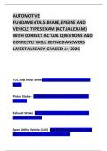 AUTOMOTIVE FUNDAMENTALS:BRAKE,ENGINE AND VEHICLE TYPES EXAM (ACTUAL EXAM) WITH CORRECT ACTUAL QUESTIONS AND CORRECTLY WELL DEFINED ANSWERS LATEST ALREADY GRADED A+ 2026