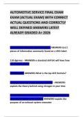 AUTOMOTIVE SERVICE FINAL EXAM EXAM (ACTUAL EXAM) WITH CORRECT ACTUAL QUESTIONS AND CORRECTLY WELL DEFINED ANSWERS LATEST ALREADY GRADED A+ 2026