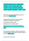 ASPHALT PAVING LEVEL 1 EXAM WITH CORRECT ACTUAL QUESTIONS AND CORRECTLY WELL DEFINED ANSWERS LATEST ALREADY GRADED A+ 2025 – 2026