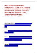 HOSA DENTAL TERMINOLOGY EXAM(ACTUAL EXAM) WITH CORRECT ACTUAL QUESTIONS AND CORRECTLY WELL DEFINED ANSWERS LATEST ALREADY GRADED A+ 2026