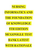 Comprehensive Nursing Informatics and the Foundation of Knowledge 5th Edition test bank 2026/2027 by McGonigle featuring complete exam style questions with verified correct answers and detailed rationales. Designed for nursing students and professionals to master nursing informatics concepts, data management, clinical decision support, healthcare technology, and knowledge based practice. Ideal for exam preparation, coursework review, and in depth understanding of modern nursing informatics found...