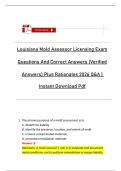Louisiana Mold Assessor Licensing Exam Questions And Correct Answers (Verified Answers) Plus Rationales 2026 Q&A | Instant Download Pdf