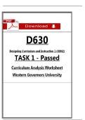 WGU D630 Task 1 Passed Guide (2026) – Curriculum Analysis Worksheet (OIM2)