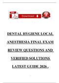DENTAL HYGIENE LOCAL ANESTHESIA FINAL EXAM REVIEW QUESTIONS AND VERIFIED SOLUTIONS LATEST GUIDE 2026 .