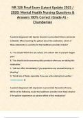 NR 326 Final Exam (Latest Update 2025 / 2026) Mental Health Nursing Questions & Answers 100% Correct {Grade A} - Chamberlain