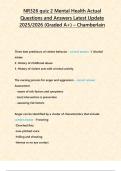 NR326 quiz 2 Mental Health Actual Questions and Answers Latest Update 2025/2026 (Graded A+) – Chamberlain