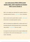 Law enforcement FINAL EXAM (Latest Update ) Questions & Answers 100- Correct -Grade A