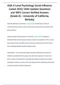 AQA A Level Psychology Social Influence (Latest 2025/ 2026 Update) Questions and 100% Correct Verified Answers [Grade A] – University of California, Berkeley